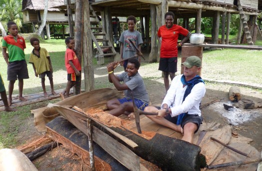 Ein Einbaum entsteht immer aus einem Stück. Eine Knochenarbeit, aber sehr entspannend. Da entsteht gerade mein Boot….