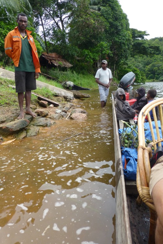 Die herzlich-distanzierte Begrüssung von unserem Guide Mathew. Eine sich während unserer Zeit in PNG anbahnende Freundschaft.