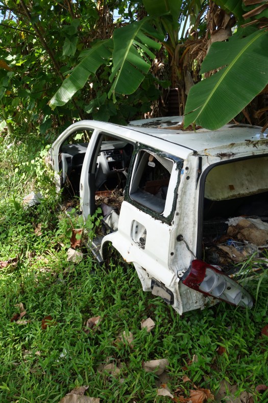Als ich dann zwei Tage später meine Dollar-Büchse auffüllen wollte, lief ich durch die Hauptstrasse von Chuuk. Dabei vielen mir, ohne zu übertreiben, hunderte von Autofracks auf, die unmittelbar neben der Strasse im Unterholz zur Entsorgung abgestellt wurden.