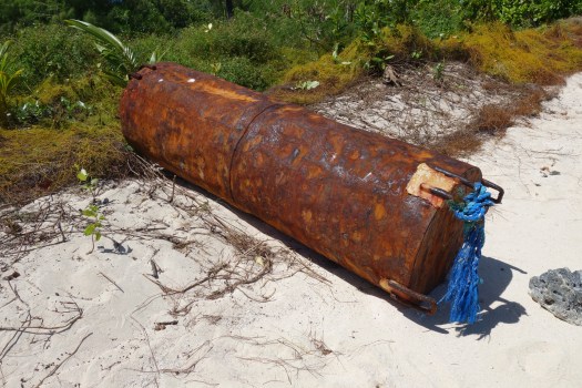 Als ich am nächsten Tag das Rauschen des Meeres nochmals in mich aufzog, erforschte ich die Insel von der oestlichen Seite her. Auf dieser Seite fand ich ganz grosse rostige Trümmer mit Metallschlaufen. Ich wusste nicht was das war und erkundigte mich bei einem Fischer..
