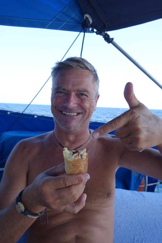 Ach ja, das Essen an Bord war wunderbar. Von Rösti (die Skipperin kommt aus der Westschweiz, also schaufelten wir den Röstigraben zu, obwohl ich nun weiss warum es ihn gibt…) über Lasagne und Cordon bleu, übrigens das Zweitbeste, dass ich je hatte. Ich denke, die exotische Umgebung half dem Cordon bleu kräftig mit, eine meiner Leibspeisen nach Herzenslust geniessen zu können.